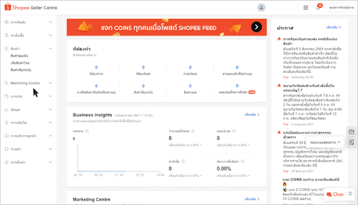ผ่านทาง Seller Centre บนเว็บไซต์ Shopee