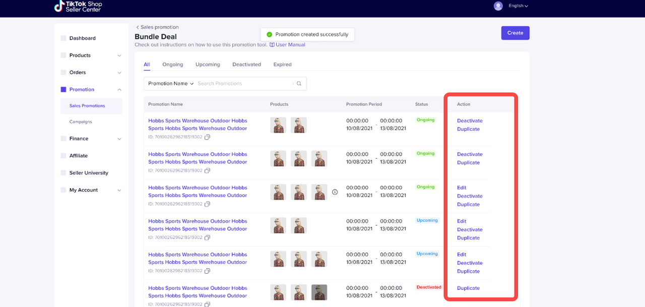 - 编辑:单击以编辑即将或正在进行的促销活动。