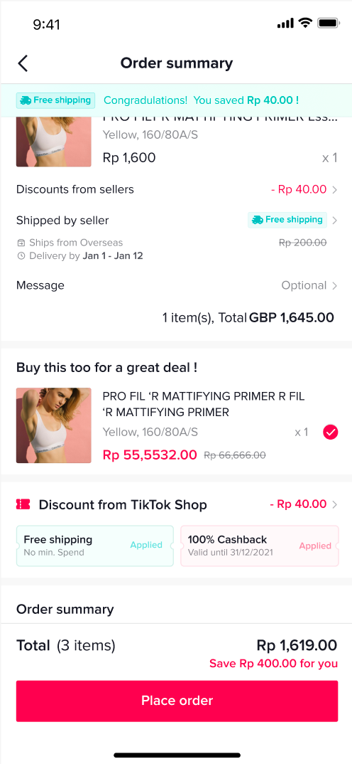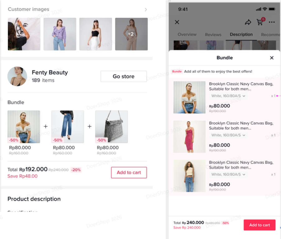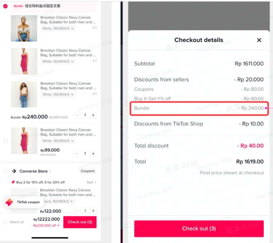 消费者可以在PDP、购物车和提单页上看到带有商品组合促销标签的产品
