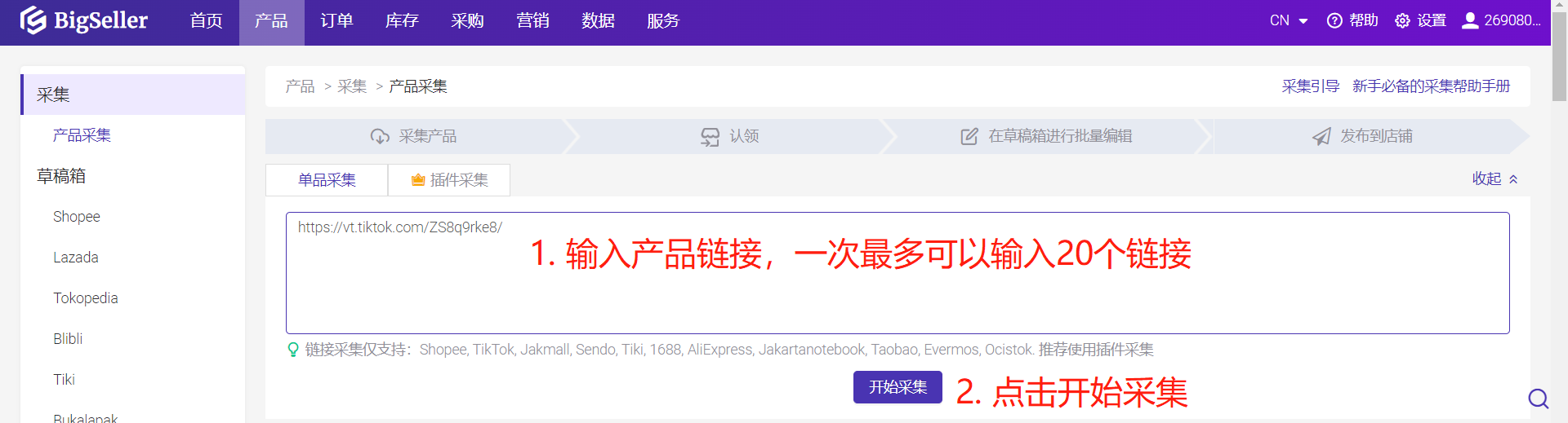 利用BigSeller高效上品,采集刊登
