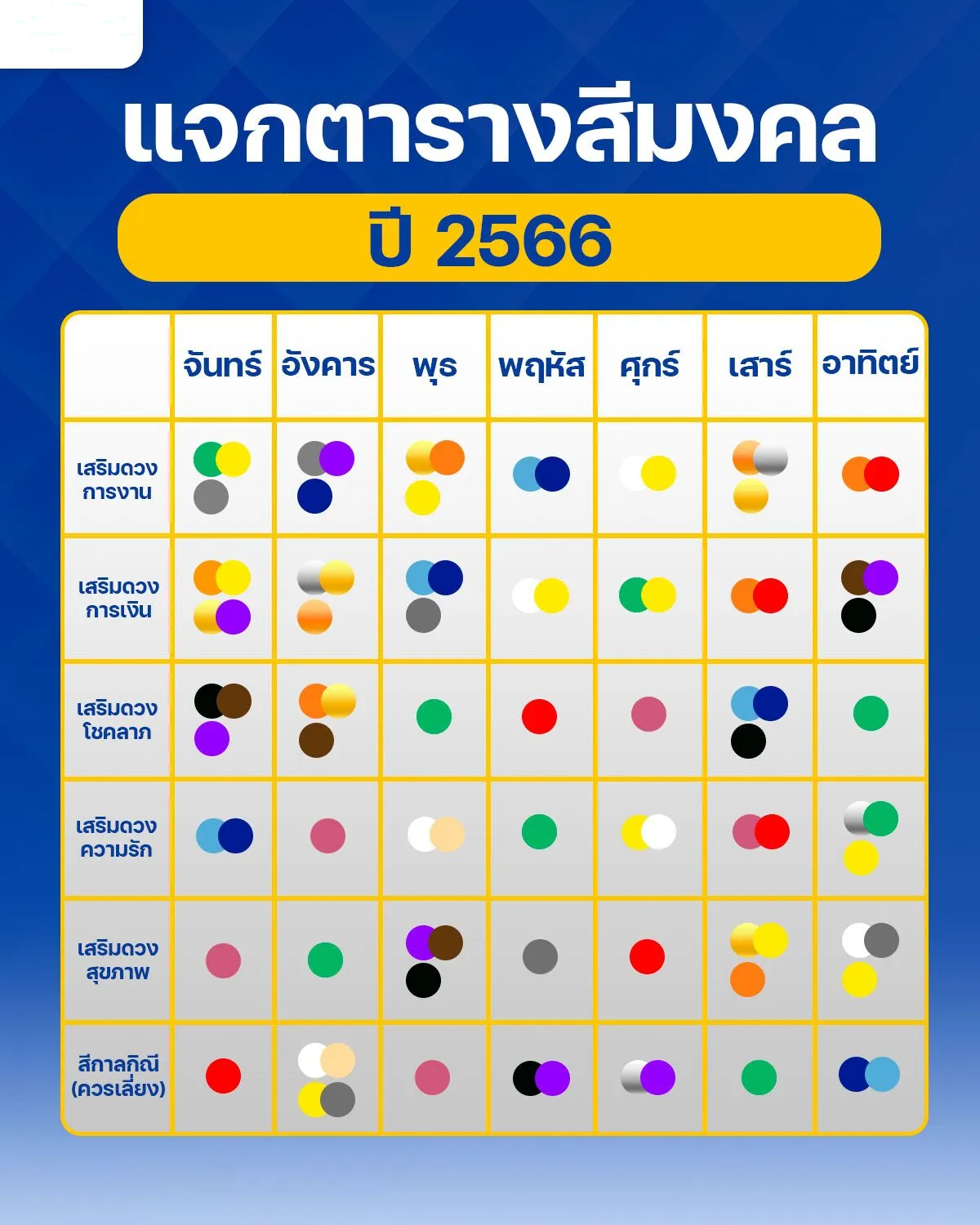 ตารางเสื้อสีมงคล 2566 เสริมดวงดี เพิ่มความเฮง สีเสื้อมงคล Save เก็บไว้ใส่ได้ตลอดทั้งปี!