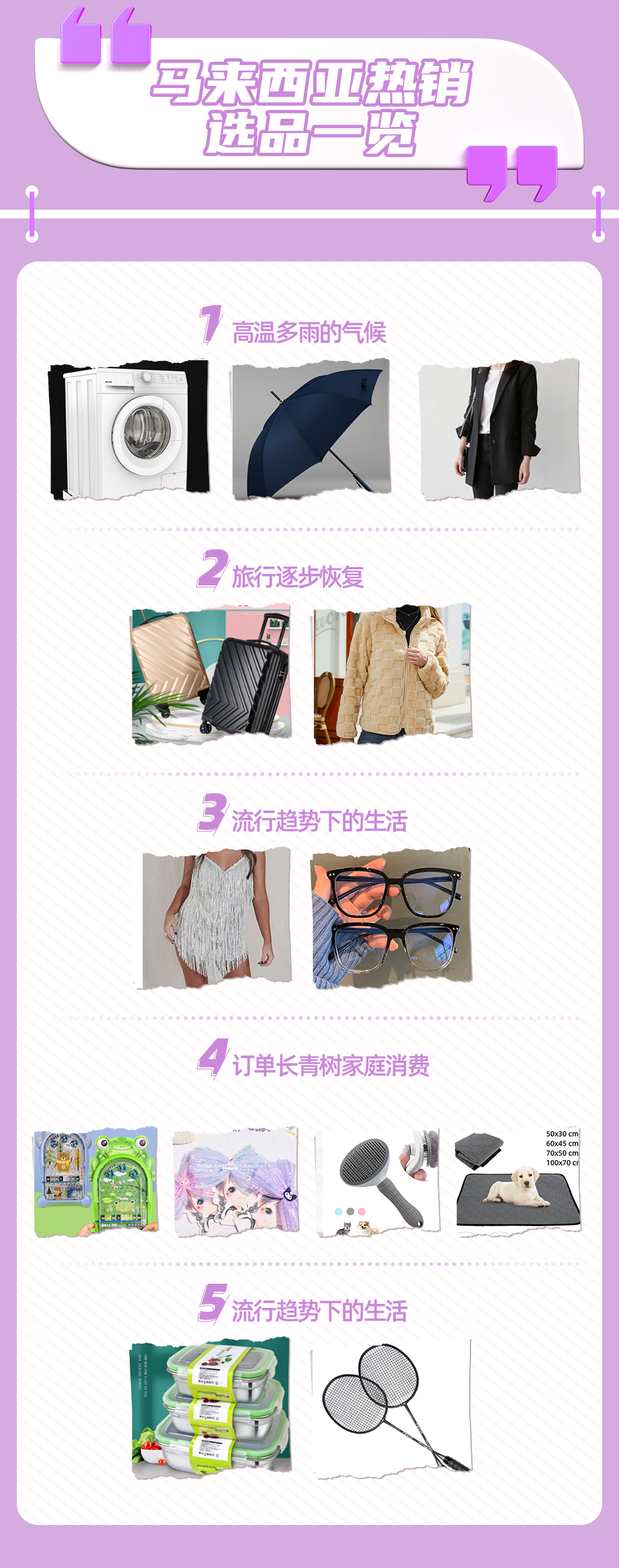 马来西亚气候全年高温多雨,当地居民经常面临室内潮湿、墙柜发霉等情况,因此对于干衣机、烘干机、除湿产品及雨具的需求量很大。
