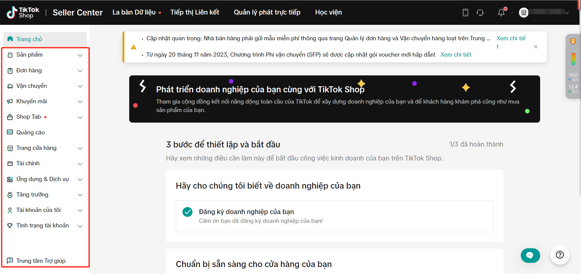 - Mở Trung tâm Nhà bán hàng TikTok Shop Việt Nam để tạo tài khoản.