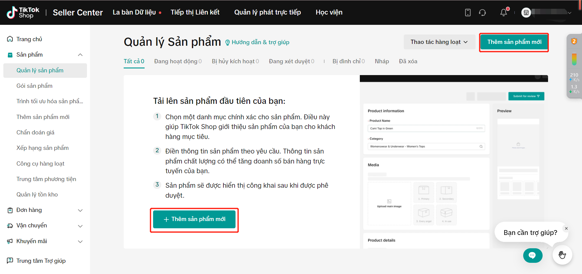 Lưu ý: Sản phẩm này sẽ hoạt động khi TikTok Shop duyệt xong giấy tờ cho bạn, nếu chưa duyệt, sản phẩm tải lên sẽ không hiển thị.