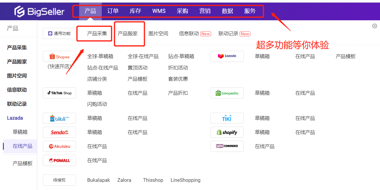 除此之外,对于已经在做Shopee、Lazada等店铺的卖家,可以使用BigSeller的店铺搬家功能,一键将产品搬家到TikTok店铺。