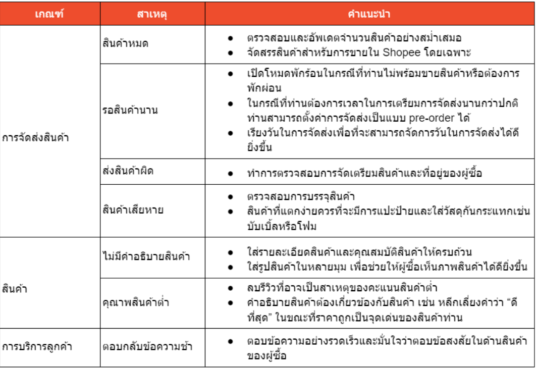 คำแนะนำเพื่อพัฒนาให้ร้านค้ามีคะแนนร้านค้าและคะแนนรีวิวสินค้าที่ดีขึ้น
