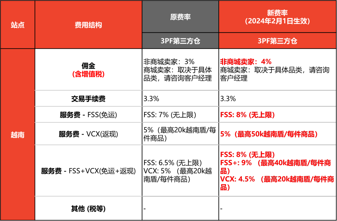 Shopee发布公告称,为了在未来能够为卖家持续提供更优质的服务和资源,Shopee越南站点三方仓的佣金费率将于北京时间2024年2月1日起进行调整。
