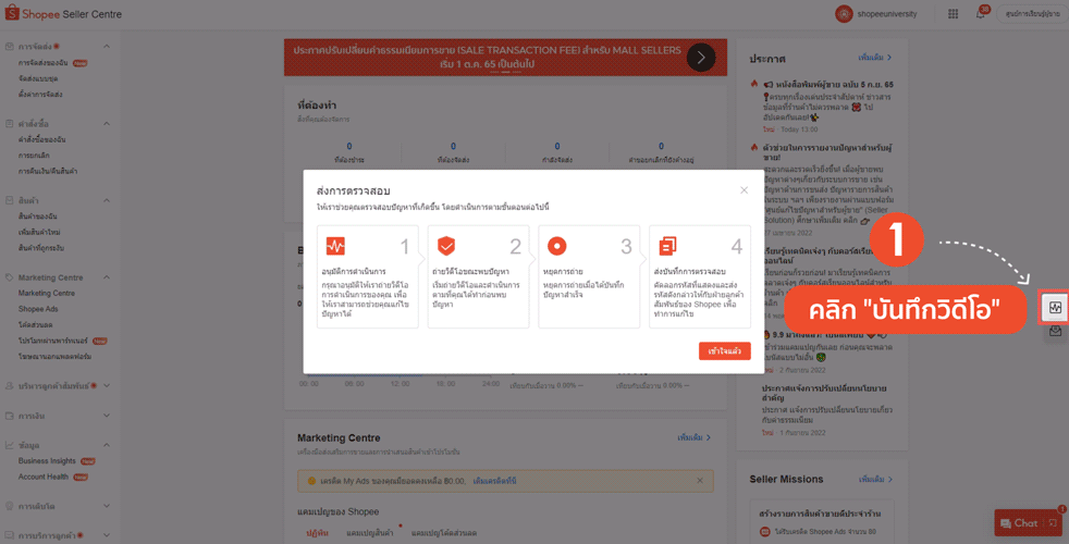 【Shopee】ฟีเจอร์ เครื่องมือบันทึกปัญหาการใช้งาน Seller Centre