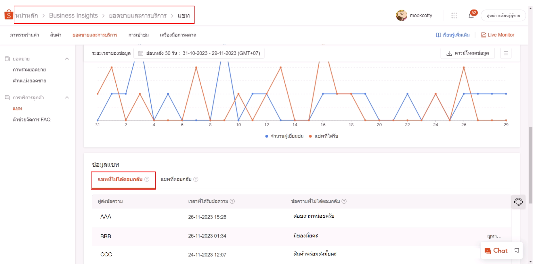 4. ร้านค้าสามารถตรวจสอบรายละเอียดแชทที่ไม่ได้ตอบกลับ ของตนเองได้อย่างไร