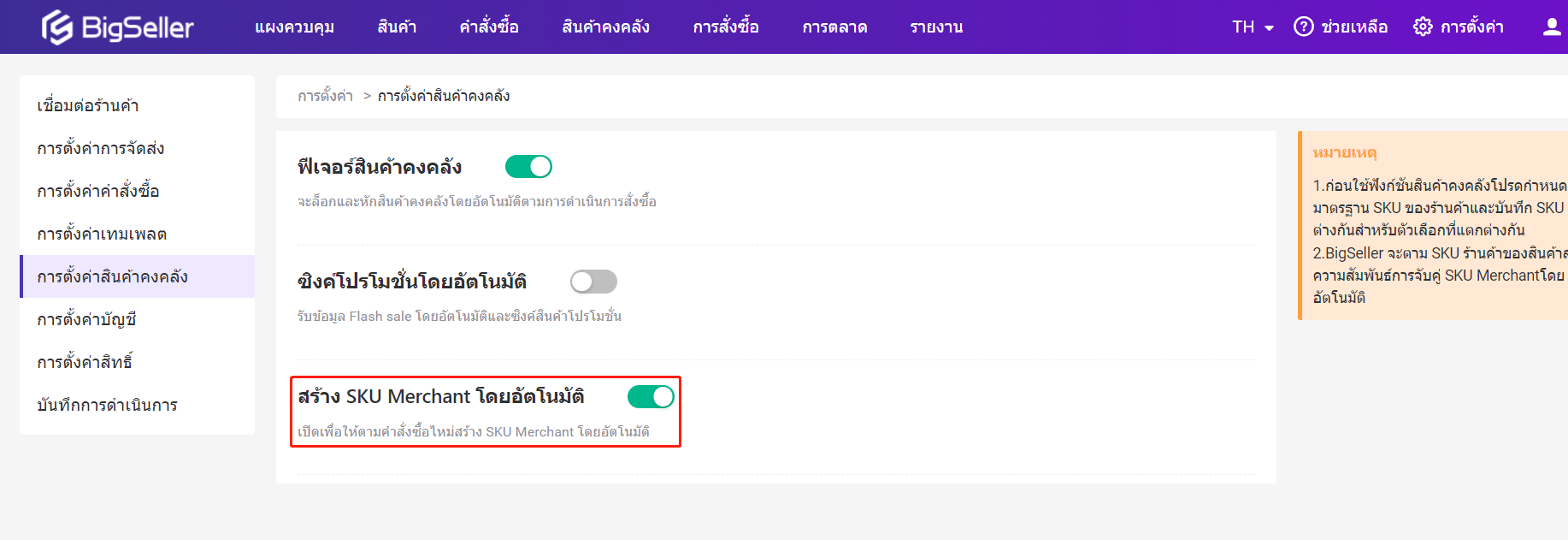เมื่อพ่อค้าแม่ค้าจะใช้ฟีเจอร์สินค้าคงคลังหรือฟีเจอร์ซิงค์สต็อกกับทุกร้านค้าทุกแพลตฟอร์ม ต้องการสร้าง SKU Merchant และความสัมพันธ์การจับคู่กับ SKU ในระบบ BigSeller หลังจากได้เปิดใช้ฟีเจอร์สินค้าคงคลัง เมื่อซิงค์คำสั่งซื้อกับระบบและได้จัดการในระบบ ระบบจะตัดสต็อกของ SKU Merchant แบบแม่นย้ำพร้อมอัปเดทสต็อกกับร้านค้าออนไลน์แบบเรียลไทม์ ช่วยให้ผู้ขายจัดการสินค้าและสต็อกได้อย่างมีประสิทธิภาพมากขึ้นและแก้ไขปัญหาที่ผู้ขายรู้สึกปวดหัวมากได้