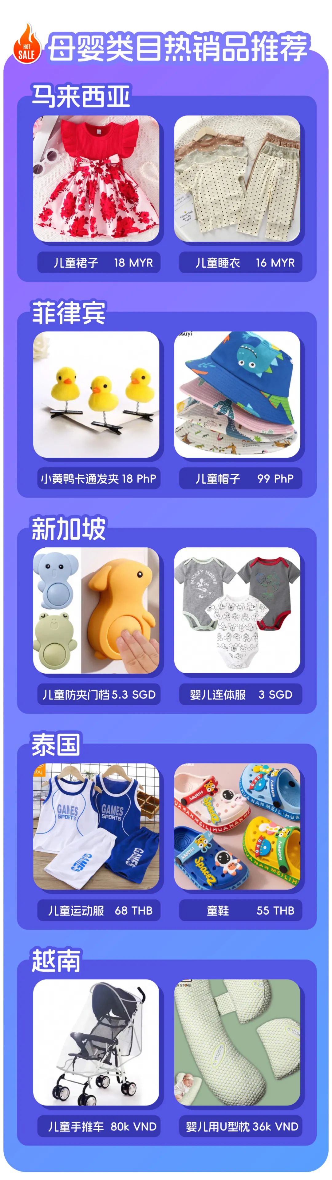 相比起中日韩为代表的东亚国家,在其生育率的日渐走低的情况下,东南亚成为了亚洲新生儿人数最多的地区,仅印尼、菲律宾和越南就占据90%亚洲0-4岁的总人口数。东南亚母婴市场需求不断攀升,更加快了中国母婴商家出海的步伐,无论是婴幼儿服饰鞋帽、婴儿推车、孕婴多用U型枕、纸尿裤等无疑是未来母婴市场的强势潜力单品。