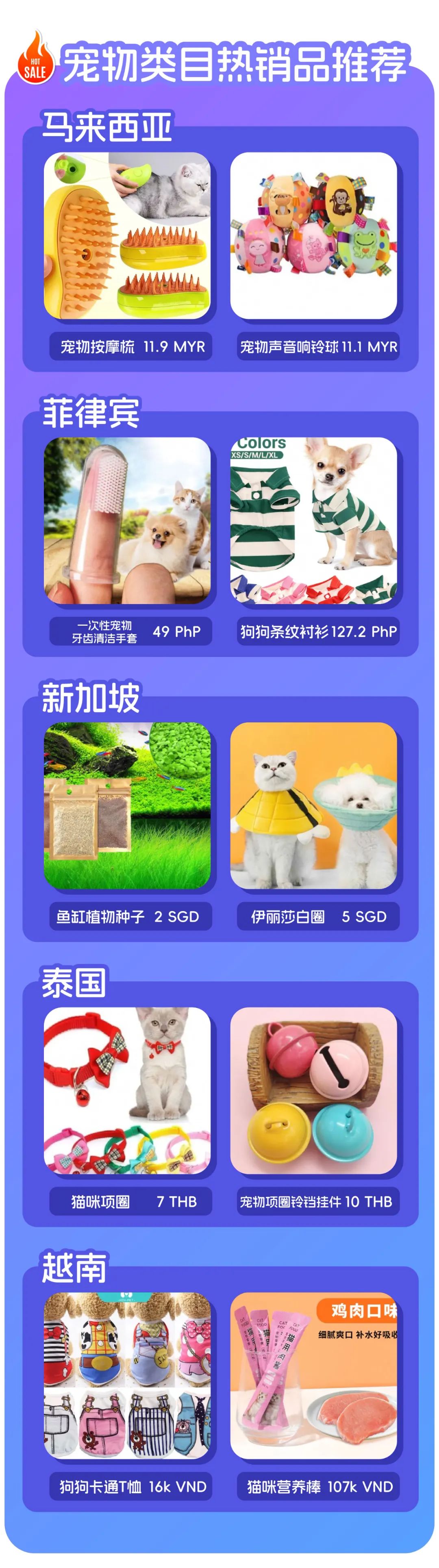 对于中国的跨境商家而言,放眼整个宠物消费市场,尽管宠物食品占据了绝对的优势,但由于较为严格的监管制度和较高的准入门槛,宠物居家产品等非食品类是中国商家入局东南亚宠物电商的主要选择。当地对于宠物玩具、宠物服饰、颈部配件的需求量较高,同时,消费者也乐意在配饰玩具领域尝试新兴产品,在配色上也偏向于丰富多彩的多元化选择,因而中国商家们可以选择需求度大,接受程度高,竞争程度较低的细分赛道上抢占先机。