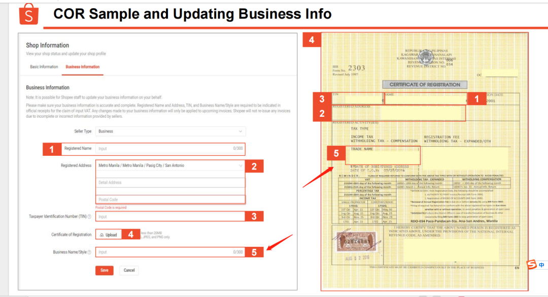 如图,Shopee官方提供的COR填写步骤