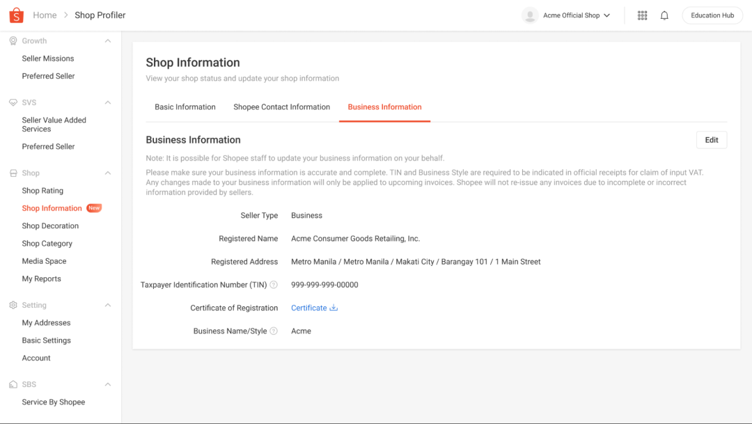 Q10:老店铺后台没有Business Infoemation填写入口怎么办?