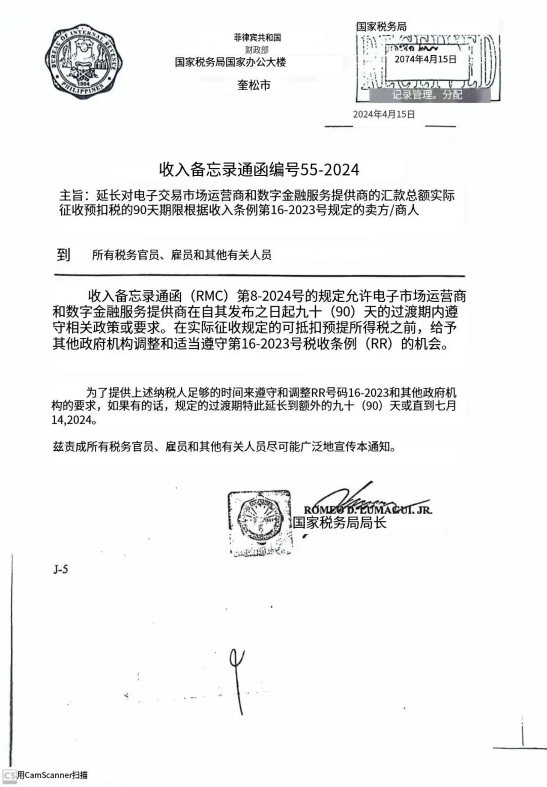 据菲律宾媒体消息,昨日(4 月 15 日),菲律宾国税局(BIR)发布了第 55-2024 号收入备忘录通知,将电商税务登记延期三个月。