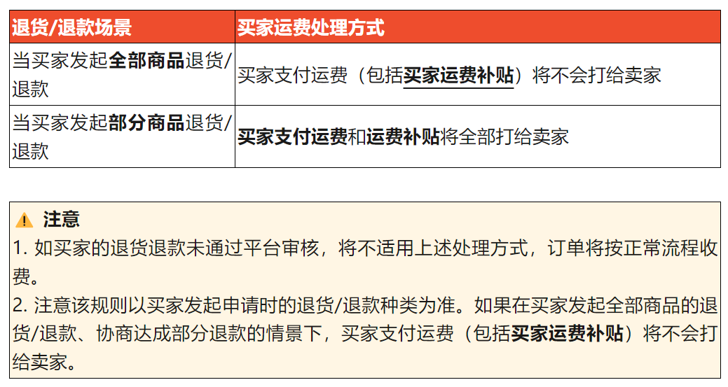 对于成功退货退款的订单,卖家需要支付买家退货至Shopee当地仓库的运费。