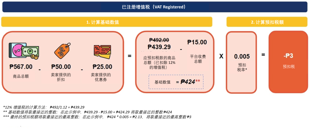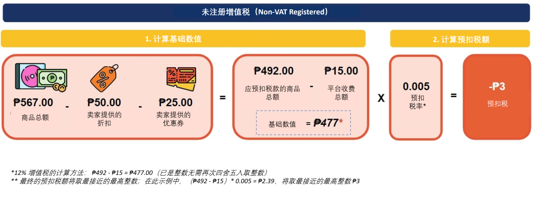 预扣税的计算方式将基于卖家/税务实体的增值税注册类型(已注册增值税(VAT Registered)或未注册增值税(Non-VAT Registered))