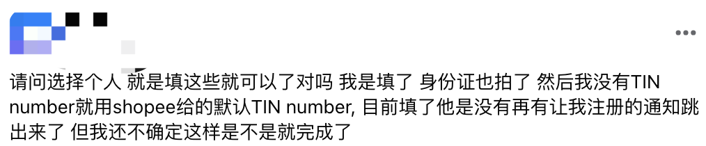 虽然 Shopee 在通知中专门强调了税号(TIN)的填写,但由于个人卖家对税务问题缺少了解,加上系统可能存在引导不到位的问题,有卖家在填写信息后一直提交不了,引发讨论。