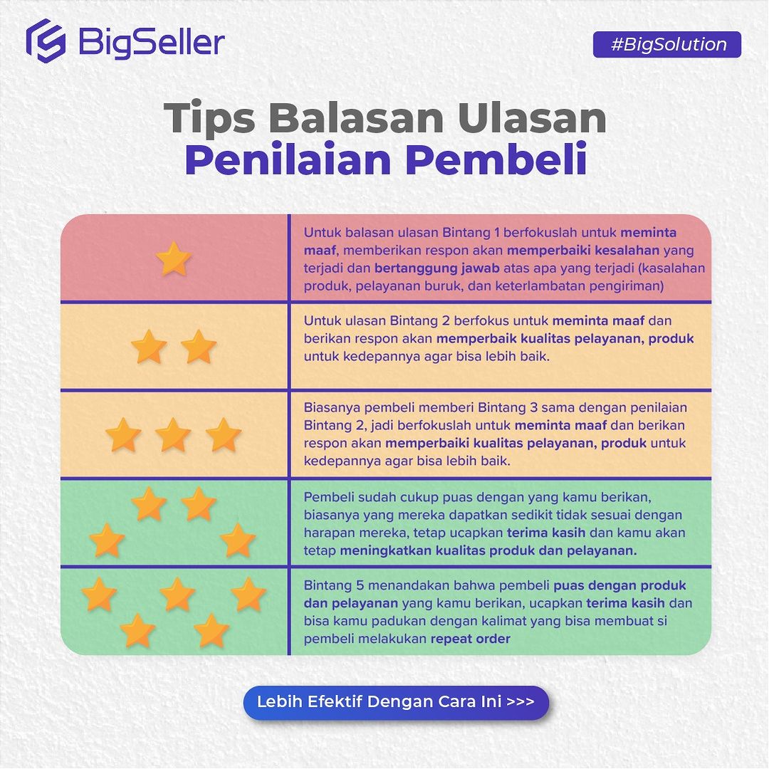 Dengan BigSeller Bisa Kirim Balasan Otomatis Dengan Masing-Masing Template. Hubungi Customer Service BigSeller Untuk Tau Cara Menerapkan Template Balasan Penilaian Otomatis!