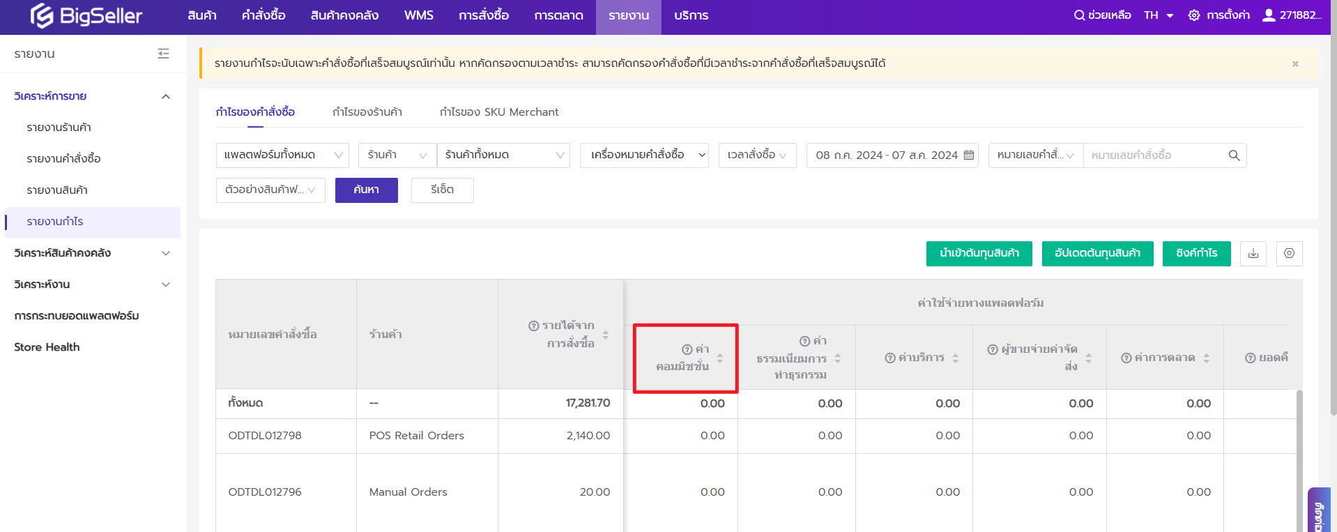 ระบบ BigSeller มีฟังก์ชันรายงานกำไรที่ช่วยให้คุณสามารถตรวจสอบรายงานกำไรจากคำสั่งซื้อ ร้านค้า และสินค้าได้อย่างครอบคลุม
