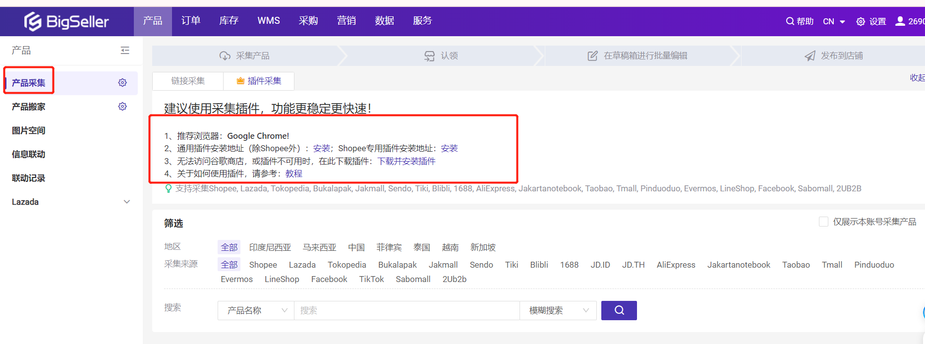 通过BigSeller快速铺货上品,从1688、淘宝、京东一键上货到Shopee店铺,实现快速批量上架,以此来测试爆品