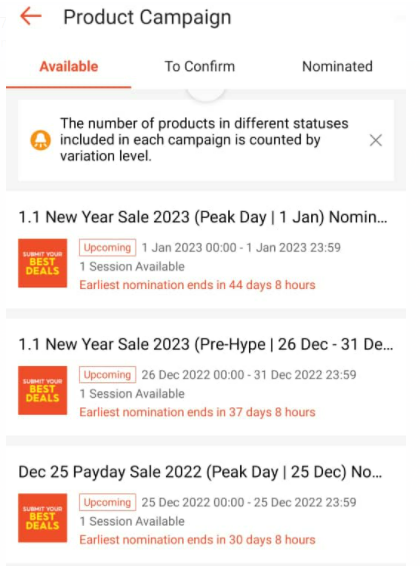 Shopee holds campaigns periodically, for example holidays, 11.11, year end campaigns. Campaigns are powerful marketing tools on Shopee, they are official Shopee promotional events. The product campaigns are featured in highly visible and easily accessible locations on Shopee’s homepage or category pages.Benefits to join Shopee Campaigns
