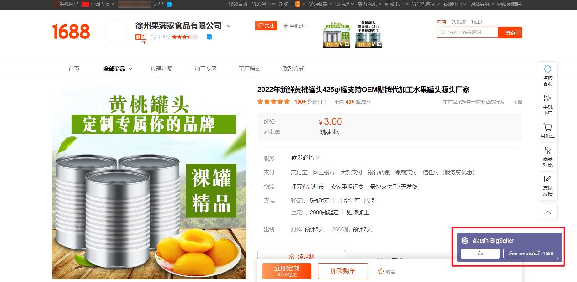 - การจัดซื้อด้วยคลิกเดียว: ผู้ขายเพียงดาวน์โหลดและติดตั้งปลั๊กอินดึงสินค้าของ BigSeller เลือกสินค้าที่ชอบในเว็บ 1688 และดึงข้อมูลไปยัง BigSeller ด้วยคลิกเดียว จากนั้น คุณสามารถนำเข้าร้านค้าเพื่อขาย หรือ จัดซื้อกับ 1688 โดยตรง และคำสั่งซื้อจะถูกซิงค์เข้าใน BigSeller เป็นใบสั่งซื้อและเติมสต็อก ซึ่งตอบโจทร์การใช้งานและเพิ่มประสิทธิภาพการซื้อได้มาก