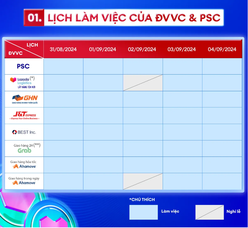 +Các đơn hàng phát sinh từ 18H ngày 01/09/2024 đến hết ngày 02/09/2024 cần được bàn giao cho ĐVVC ttrước 10H ngày 03/09/2024.