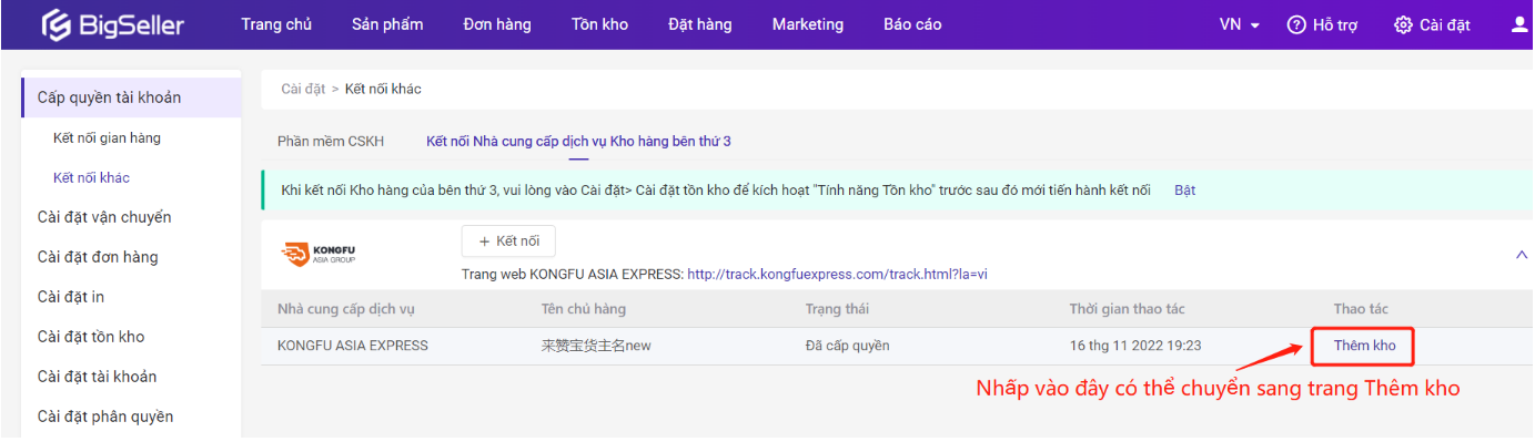 Ngoài ra, nhà bán hàng đa sàn có thể đồng bộ tồn kho của Kongfu Asia express hoặc Kerry Ecommerce sang BigSeller, điều chỉnh chênh lệch tồn kho giữa hai bên, đảm bảo số lượng tồn kho của kho hàng bên thứ 3 và BigSeller là nhất quán để ngăn chặn việc bán quá mức.