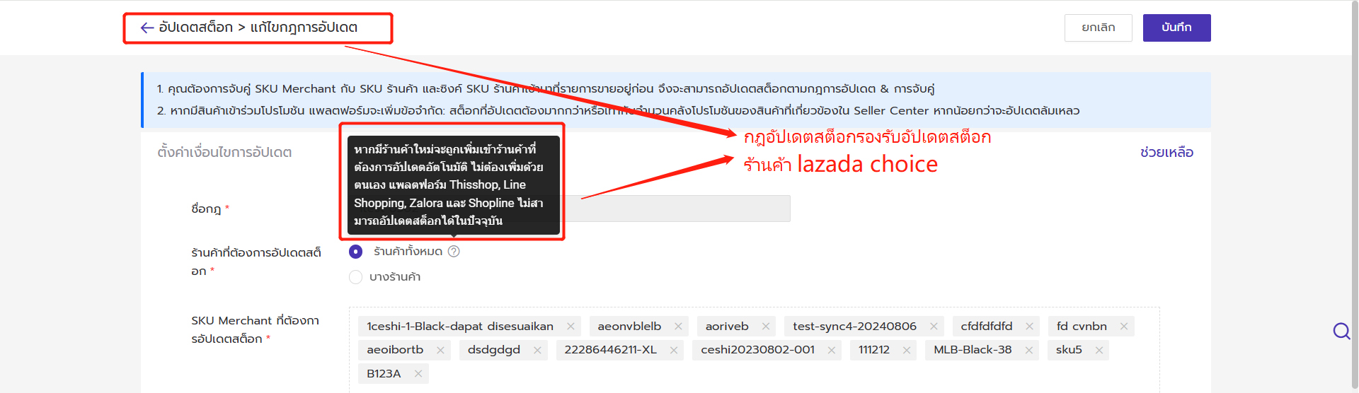 ไม่ว่าสต็อกจะเพิ่มขึ้นหรือลดลง ระบบจะอัปเดตสต็อกไปยังร้านค้า Lazada Choice แบบเรียลไทม์