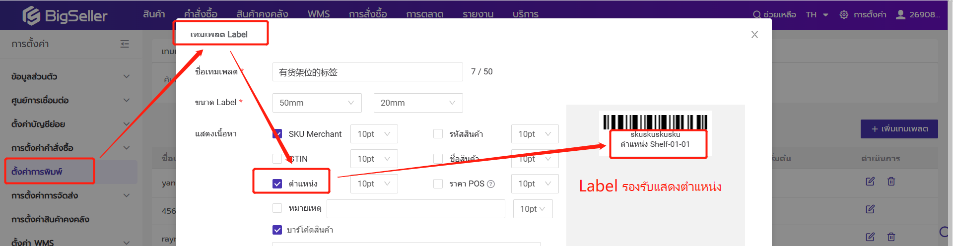 3. Label สินค้ารองรับแสดงตำแหน่ง: