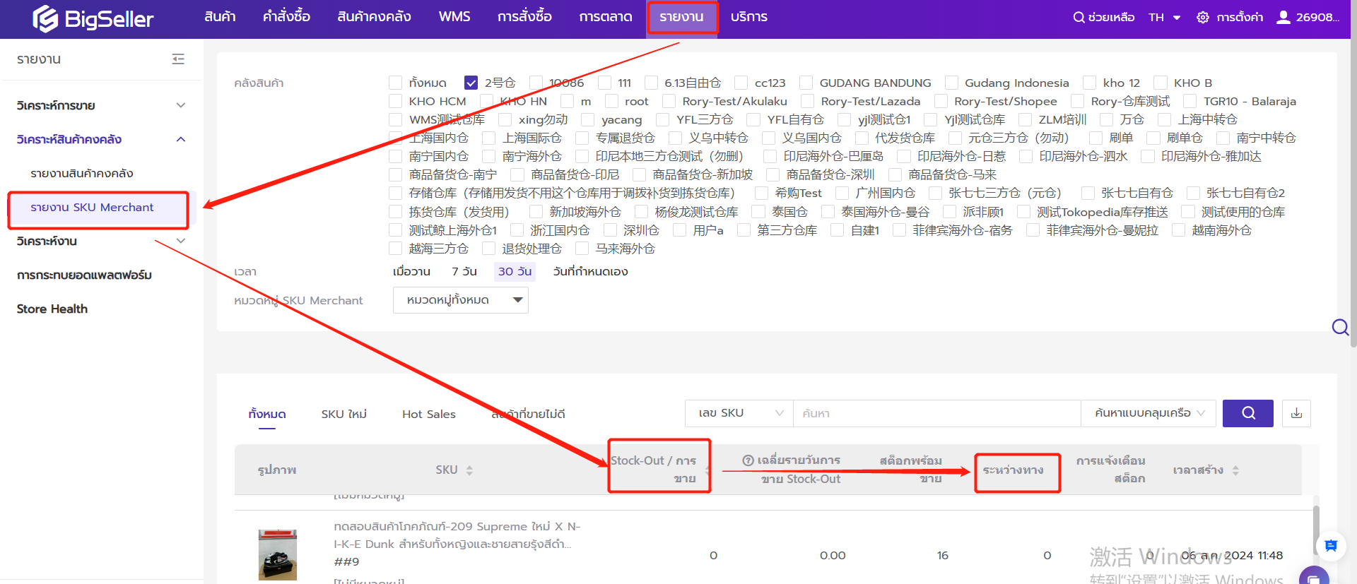 เพื่อตอบสนองความต้องการของผู้ขายหลายราย ในรายการรายงาน SKU Merchant รองรับคัดกรองคลังสินค้าและเวลาเช็กดูข้อมูล Stock-Out การขายและระหว่างทาง