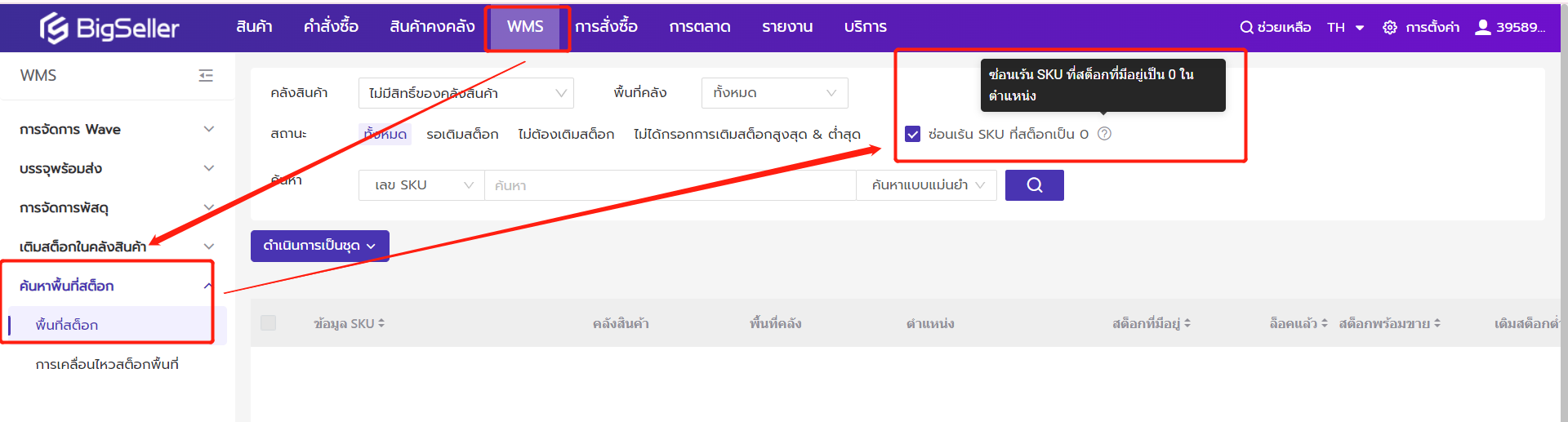 พื้นที่สต็อกในโมดูล WMS เพิ่มตัวเลือกซ่อนเร้น SKU ที่สต็อกเป็น 0