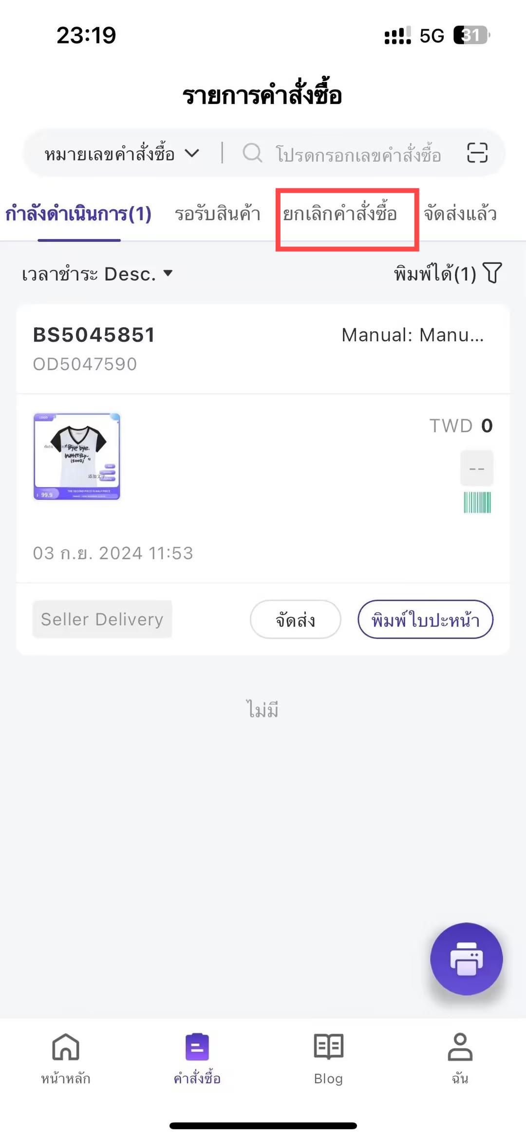 3. รายการคำสั่งซื้อเพิ่ม【ยกเลิกคำสั่งซื้อ】: