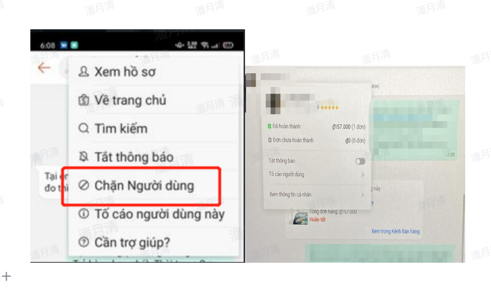 Tại trang Chat và trang IP người mua đều đã mất nhập khẩu "Chặn người dùng"