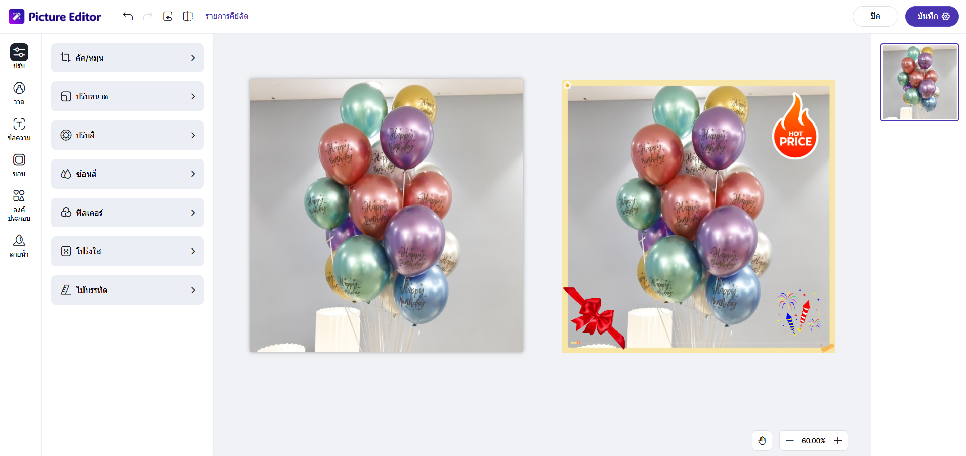 ฟีเจอร์เครื่องมือตกแต่งภาพถ่าย