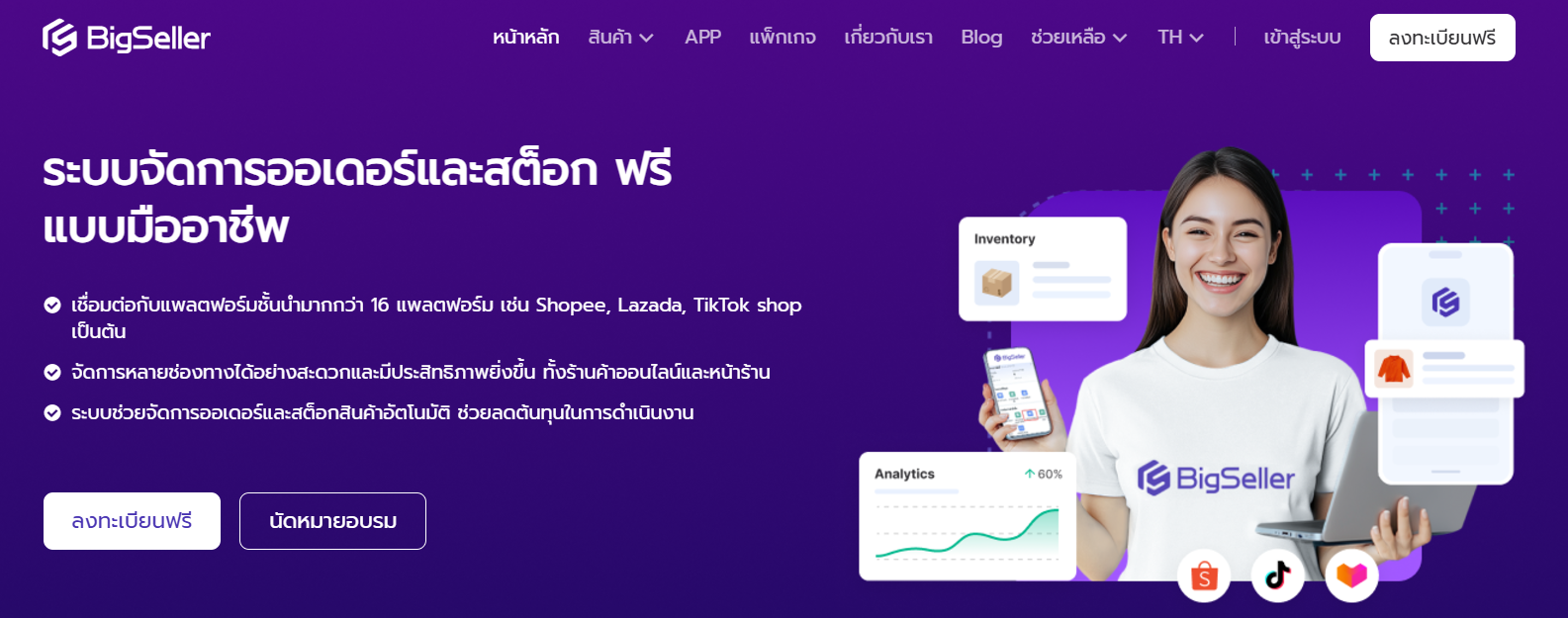 BigSeller ช่วยให้ผู้ขายอีคอมเมิร์ซในแพลตฟอร์มชั้นนำอย่าง Shopee, Lazada, TikTok, LineShop และ Shopify รวมถึงกว่า 16 แพลตฟอร์ม สามารถจัดการสินค้าทุกขั้นตอน ตั้งแต่การดำเนินการ OMS (ระบบจัดการคำสั่งซื้อ) การซิงค์สต็อก ไปจนถึงฟังก์ชัน WMS ( ระบบการจัดการคลังสินค้า ) ได้อย่างมีประสิทธิภาพ ด้วยเครื่องมือการตลาดที่แม่นยำและการดำเนินงานอัจฉริยะ ช่วยให้ร้านค้าของคุณโดดเด่นในตลาดที่เต็มไปด้วยการแข่งขันสูง ปัจจุบัน BigSeller ได้รับความไว้วางใจจากผู้ใช้งานกว่า 100,000 รายในประเทศไทย อย่ารอช้า! 👉 คลิกลงทะเบียน BigSeller 👈 เพื่อดูรายละเอียดเพิ่มเติม และเริ่มต้นเส้นทางการดำเนินงานที่มีประสิทธิภาพของคุณได้ทันที! ใช้ Bigseller ทันทีเพื่อก้าวสู่การเป็นผู้ค้ารายใหญ่