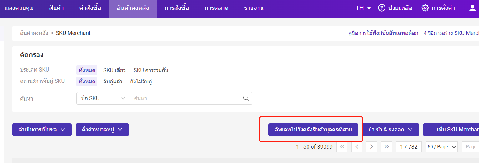 3. อัพเดทข้อมูล SKU Merchant ไปยังคลังสินค้าแบบบุคคลที่สาม
