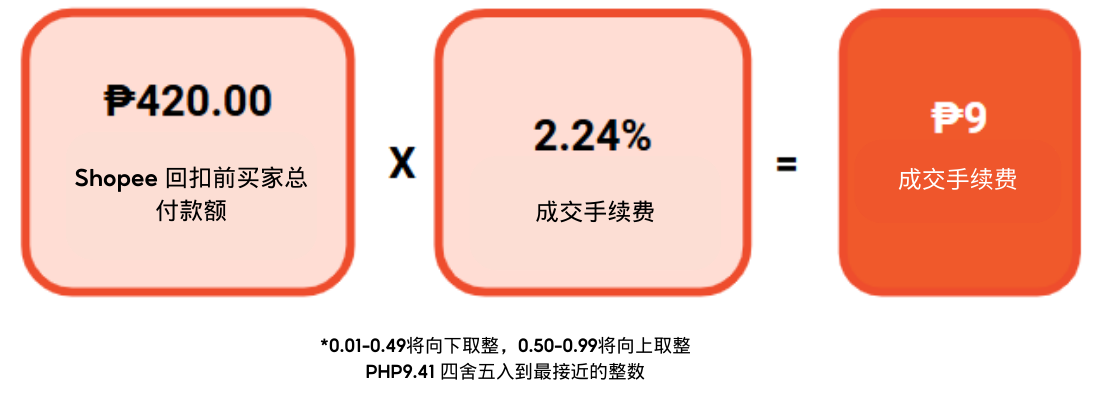 使用4.48%的标准费率(每件商品封顶 ₱100)