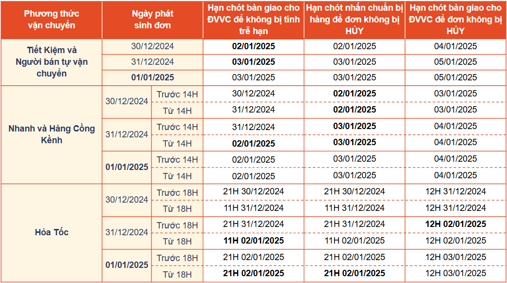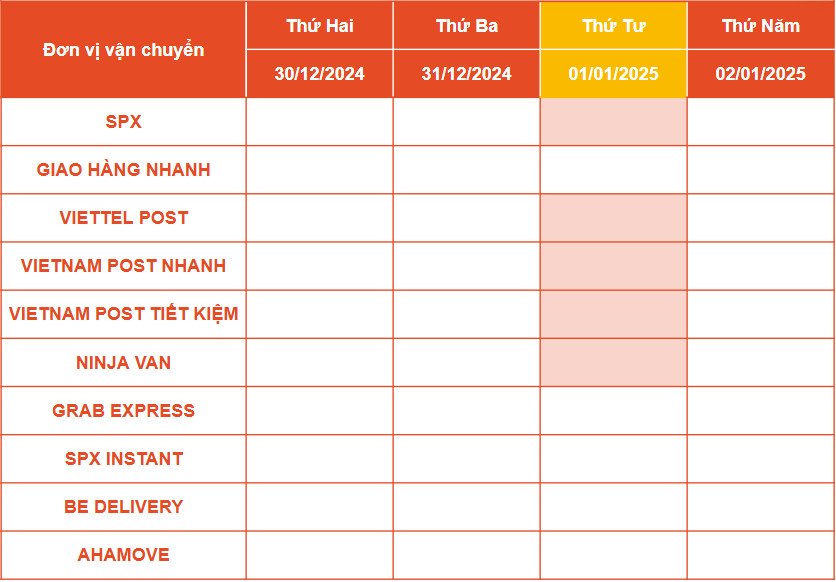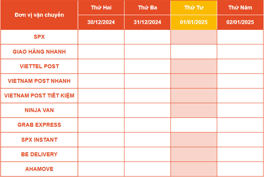 Lịch làm việc của Shopee và các Đơn Vị Vận Chuyển Tết Dương Lịch 2025