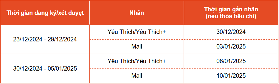 Ngoài ra, các Shop Yêu Thích/Shop Yêu Thích+ cần lưu ý thêm hạn xử lý bên dưới để đảm bảo Tỷ lệ Giao Hàng Nhanh.
