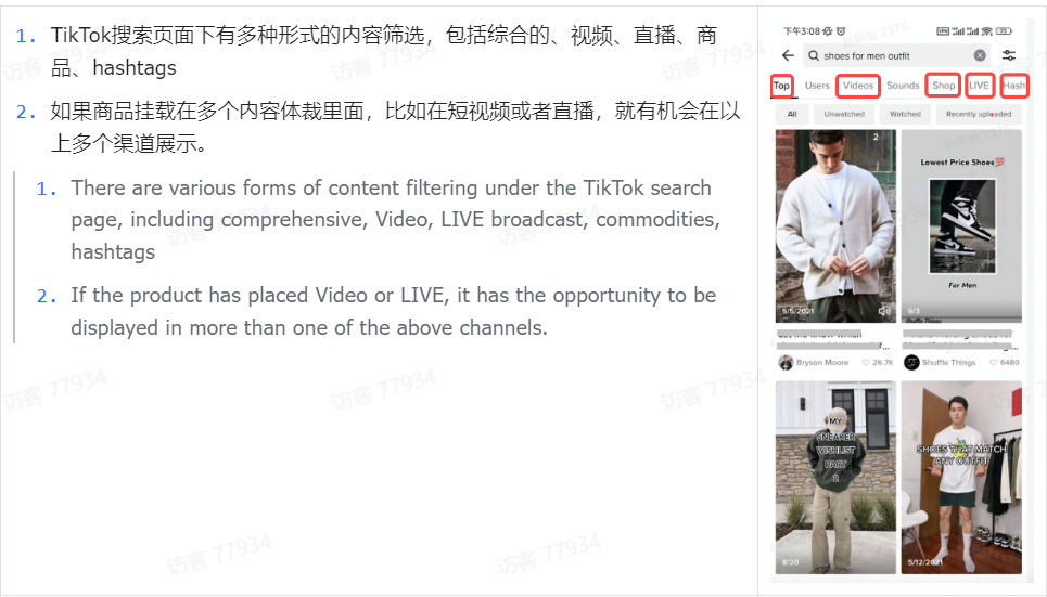 如果拥有多种形式的体裁(直播、视频),相比单独的商品卡更有机会在TikTok的多个页面被展示出来