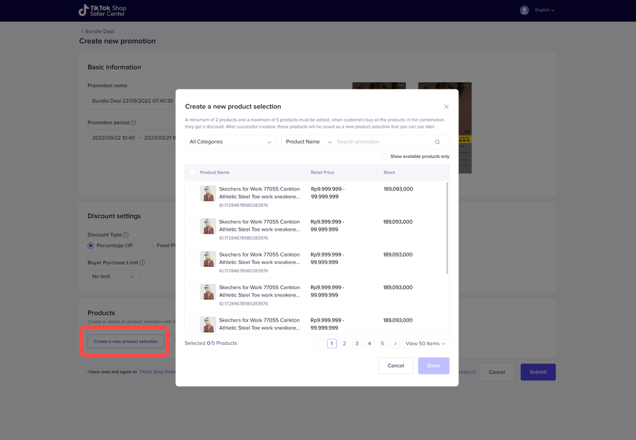 输入先前选择的产品组合的每个 SKU 的交易价格或折扣百分比值。 所有 SKU 的 Deal Price 价格必须低于原价。