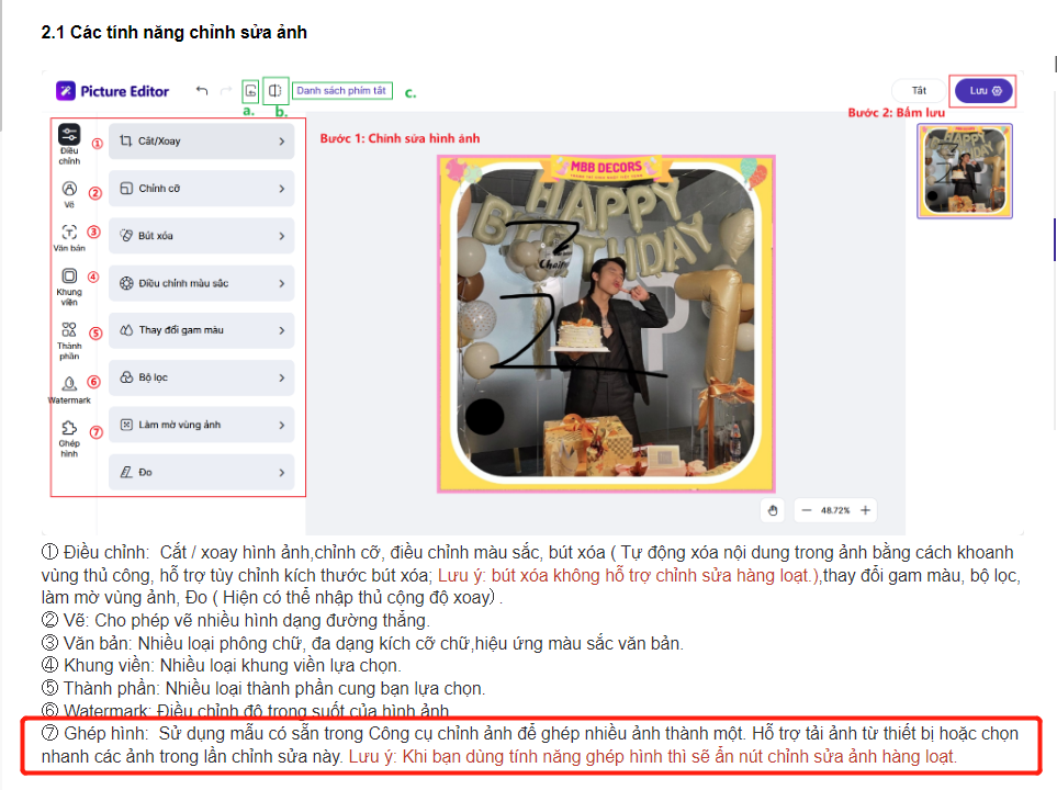 (4)Thay đổi kích thước và độ phân giải hình ảnh.