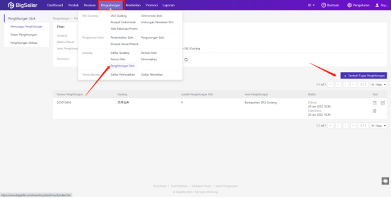 Jangan lupa gunakan sistem penghitungan stok dari BigSeller lalu buat tugas penghitungan. Pilih Produk yang ingin kita hitung jumlah stoknya.