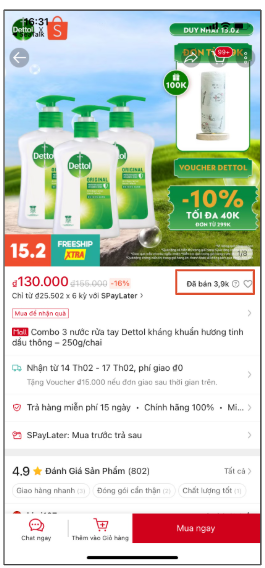 Tính năng Sản phẩm tương tự bao gồm 2 cập nhật: Lượt bán trên Shopee và Đánh giá sản phẩm tương tự.a. Lượt bán trên Shopee