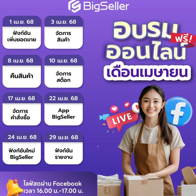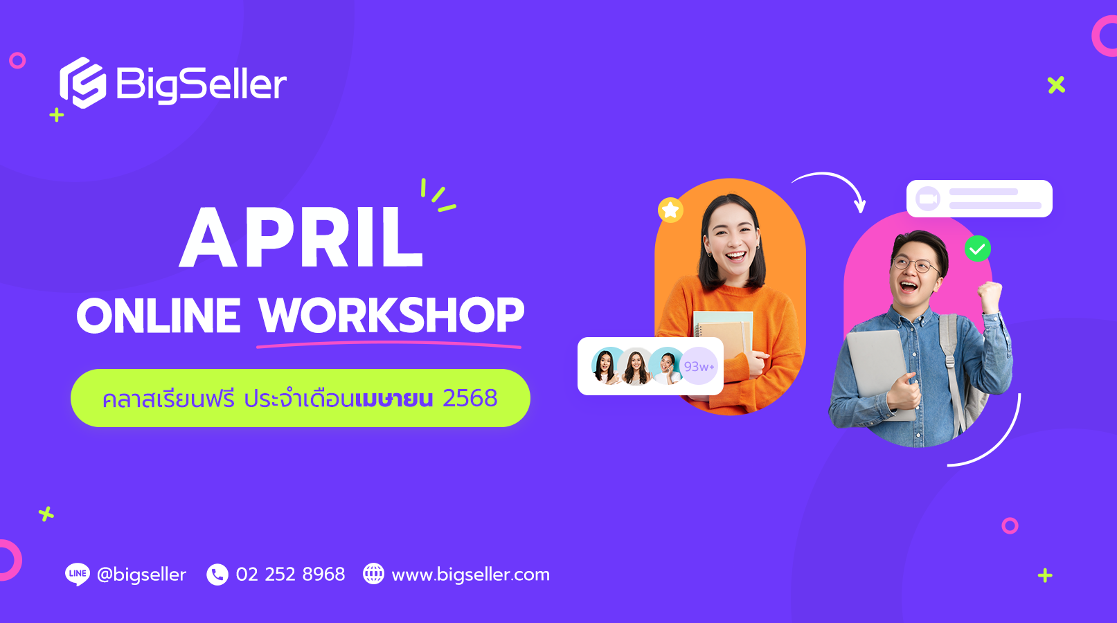 อบรมประจำสัปดาห์ตลอดเดือนเมษายน เพื่อช่วยเหลือผู้ขายที่พึ่งผูกร้านค้าเข้ามาใช้งานระบบ Bigseller ใหม่เพื่อพัฒนาร้านค้าและจัดการออเดอร์อย่างเป็นระบบ โดยสามารถเลือกคลาสเรียนที่เหมาะสมและลงทะเบียนเข้าเรียนฟรีได้ตลอดทั้งเดือน