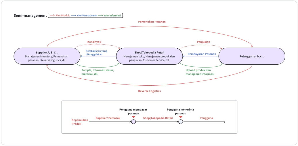 Platform akan menanggung biaya penjualan seperti layanan pelanggan, iklan, kreator dll. Penjual hanya perlu mengirimkan barang dan menyediakan after sales