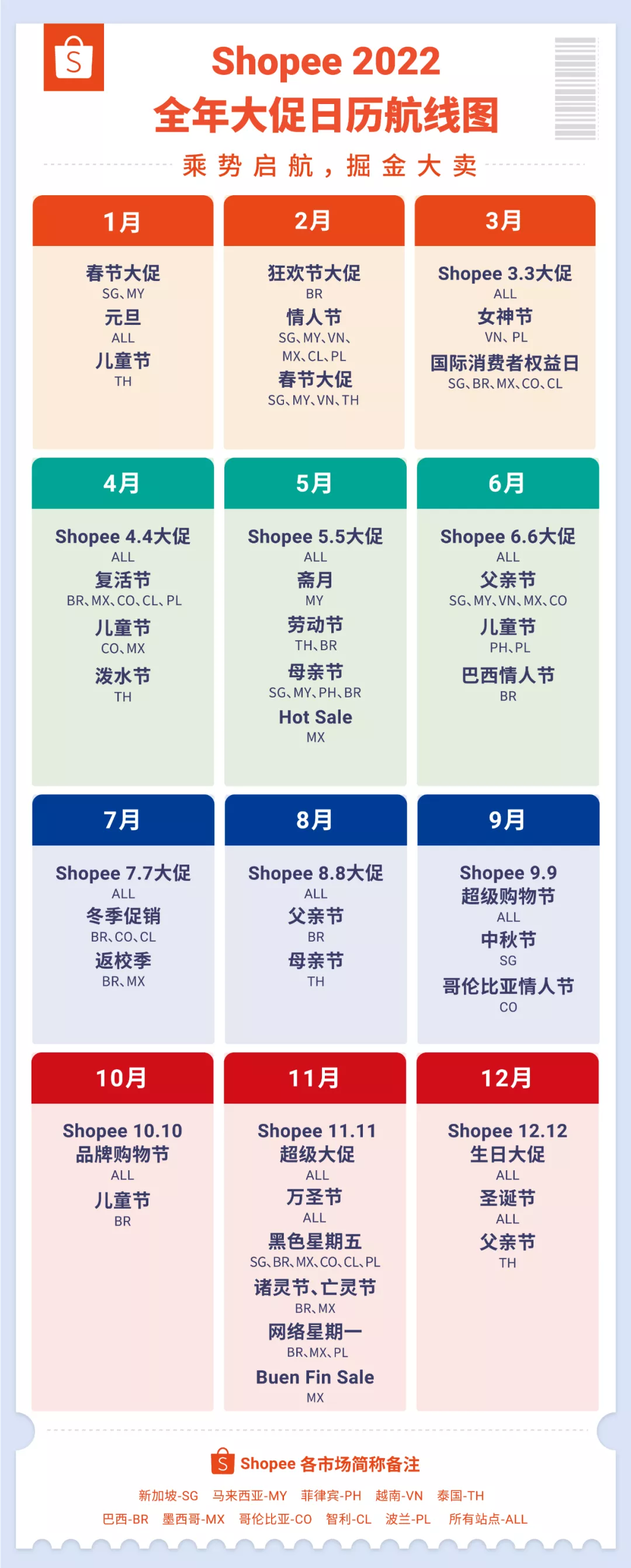 新鲜出炉! 2022 Shopee大促日历公布, 速看全年营销重点及热卖品类