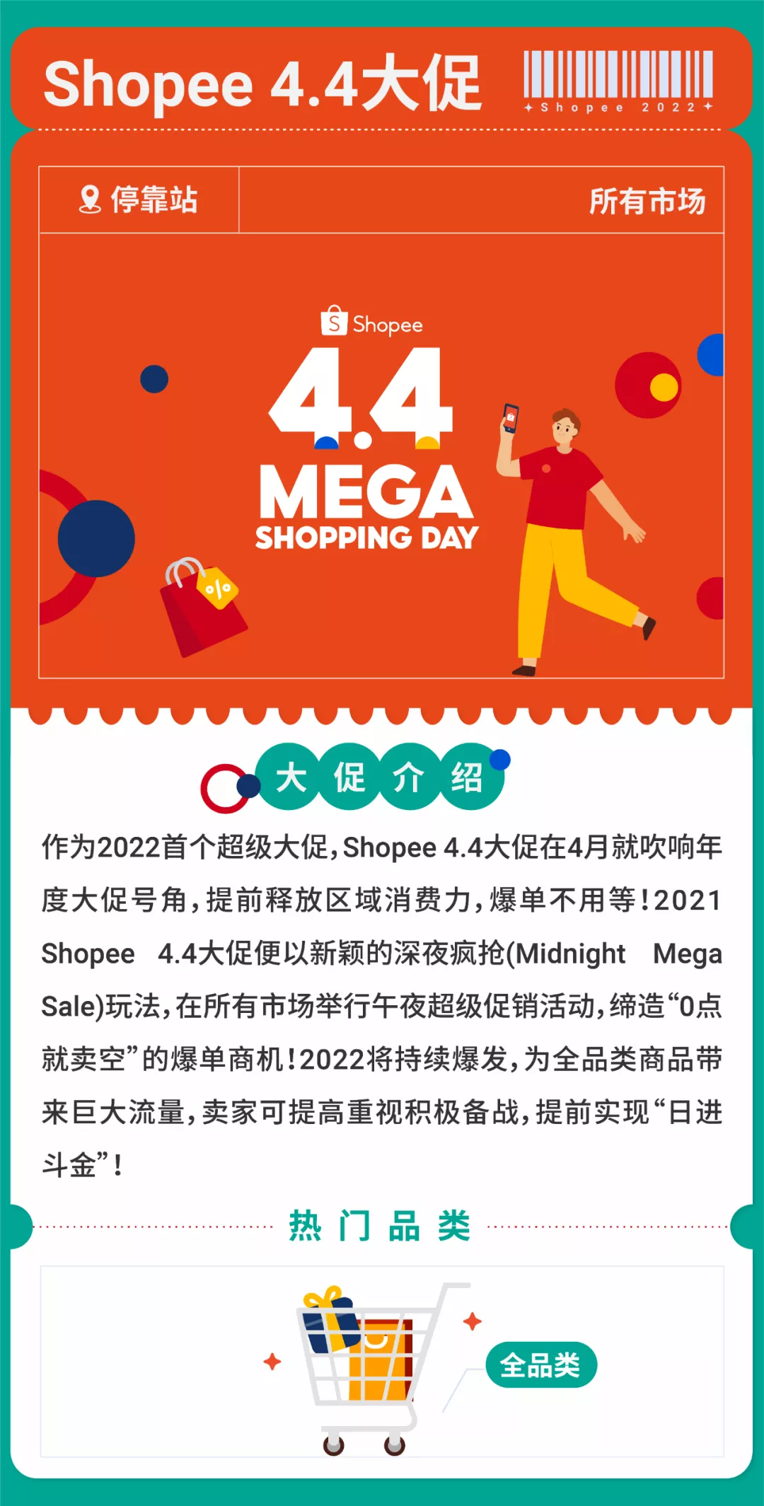 2022年掘金之旅即将开启,全年大促不停,助力全品类热销不断。各位搭乘Shopee “掘金号”航班的乘客坐稳了,乘势淘金爆单大卖!